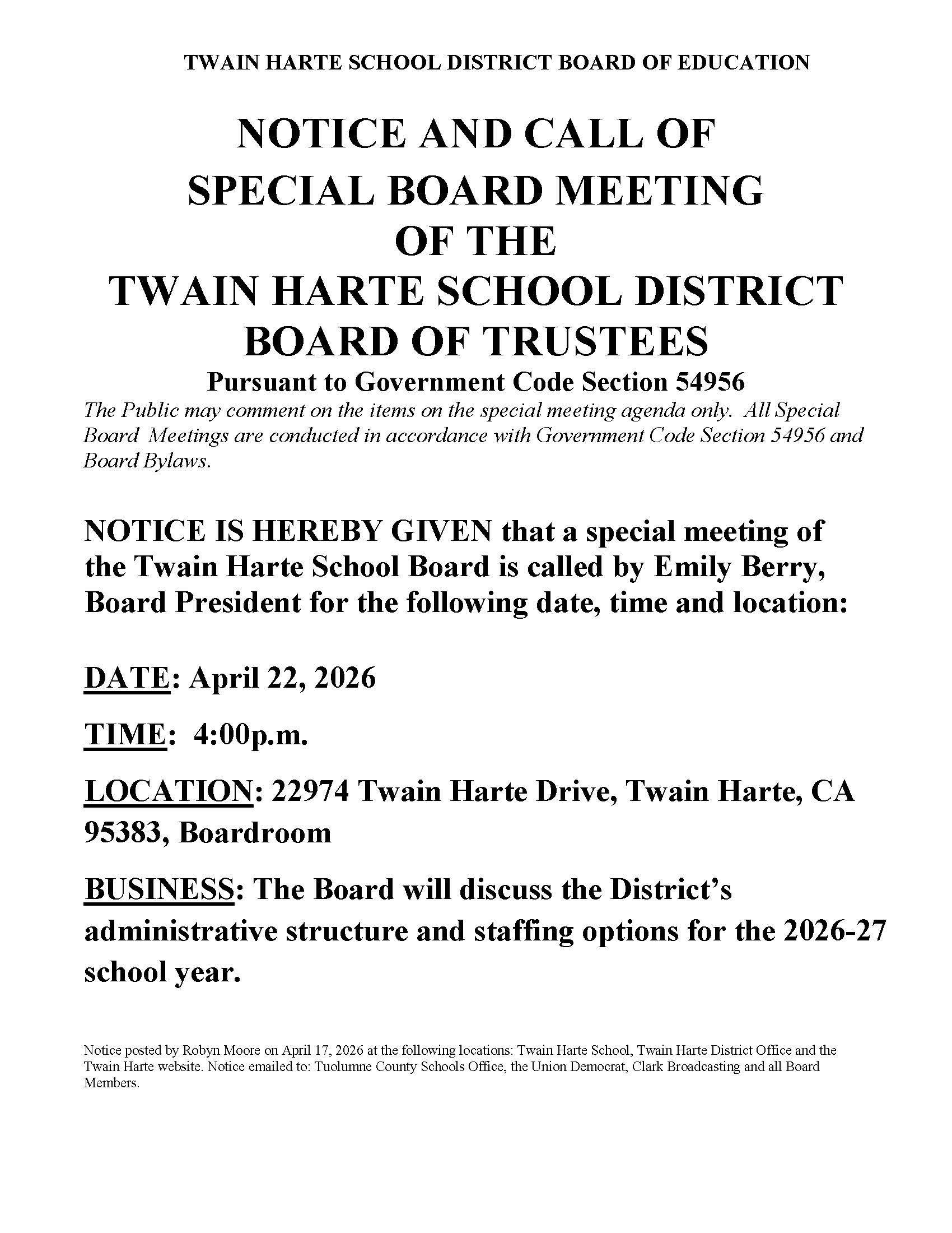 Welcome to Twain Harte School! My name is Gabe Wingo and I am privileged to have the opportunity to serve our students and families as Superintendent/Principal of Twain Harte School. Our highly dedicated staff, talented and hardworking students, and supportive parents make our school community a wonderful place to work and learn.